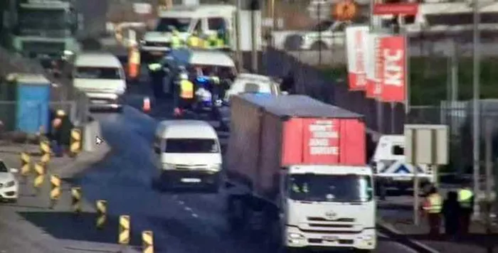 The officer and his colleague were conducting a routine traffic stop when a taxi driver jumped the robot at the corner of Jan Smuts Drive and Govan Mbeki Road on Wednesday morning.