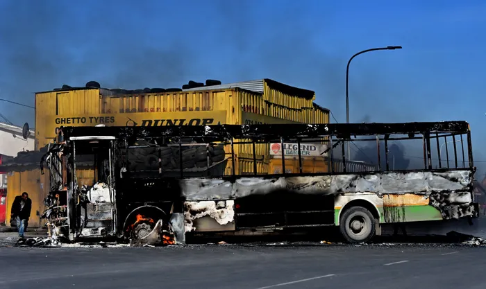 CARNAGE: Golden Arrow bus torched. Picture: Ayanda Ndamane /African News Agency (ANA)