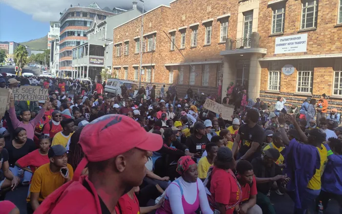 Students from Stellenbosch University, CPUT and UWC took to the streets to demand an intervention from government to find solutions for NSFAS’s problematic new payment system, as well as hundreds of students being defunded for various reasons.