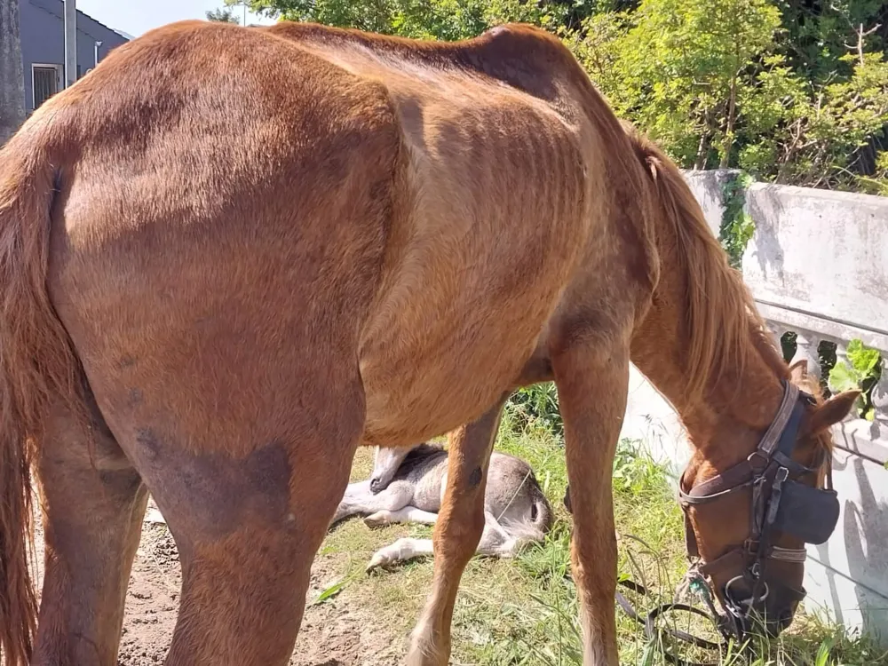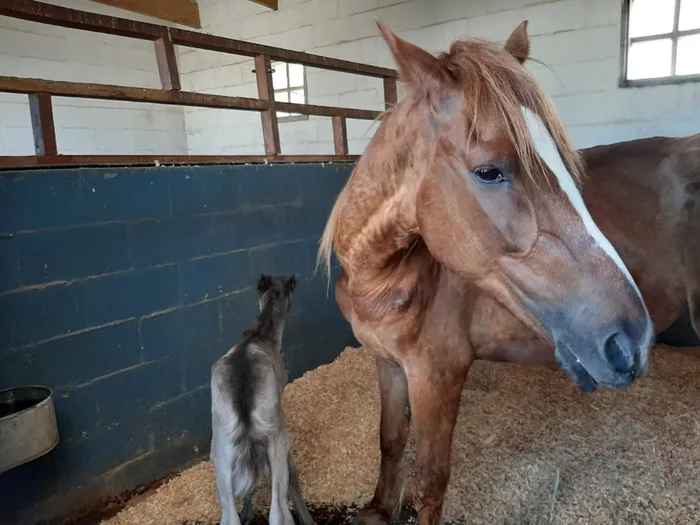 Chief inspector Jaco Pieterse says that on arrival the SPCA found the merrie and her newborn filly on the side of the road, along with the afterbirth.