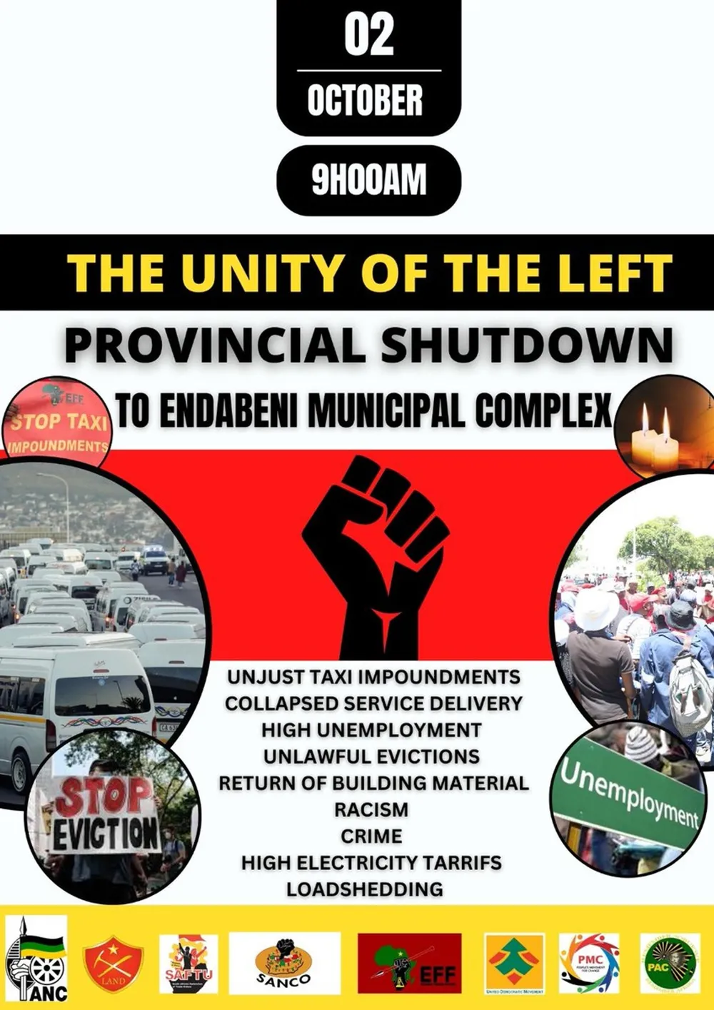 The party tweeted: “Be on the right side of history and join the EFF Western Cape Provincial Shutdown scheduled to take place on 2 October. We say no more unjust taxi impoundments, no to gangsterism, no to collapsed service delivery, no to unemployment, no to unlawful evictions, no to racism!