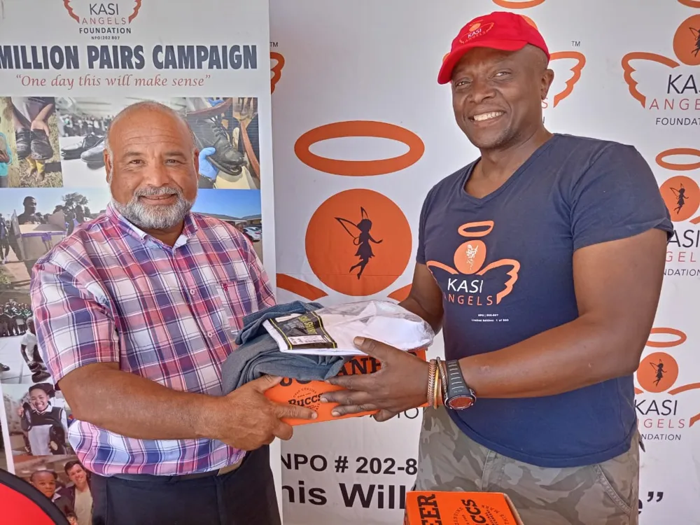 HANDOVER: Mark Baatjies, GMCA, and Gerald Nomlala of Kasi Angels Foundation pic Patrick Louw
