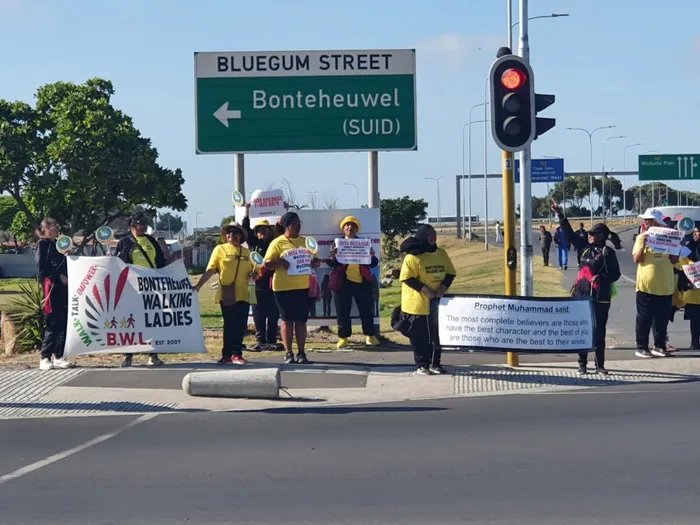 On Monday morning, around 30 members demonstrated at the corner of Bluegum Street and Jakes Gerwel Drive with placards.