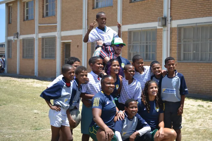 The rugby players, who are in the Mother City this week for the Cape Town leg of the World Rugby SVNS tournament, were at Petunia Primary School where they cleaned veggies and dished up food that was later handed out in Wallacedene.
