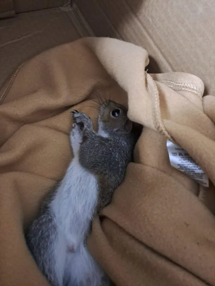 Lize Testa from Squirrel Rescue and Rehab adds: “Unfortunately all the ribs of the one side were broken, the pelvis was broken, it was quite bad.”