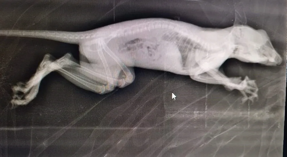 The tiny animal, identified as an Eastern Grey Squirrel, died after most of the bones in its body were crushed.