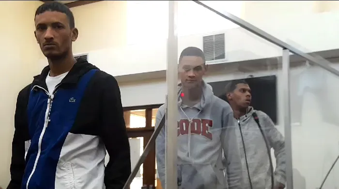 IN CUSTODY: Riaan Matthews, Keanan America and Chandler Harper at their bail hearing. Picture: Mahira Duval