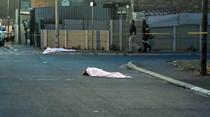 GRUESOME SCENE: Bodies were strewn in a Heideveld street. Picture: Leon Knipe