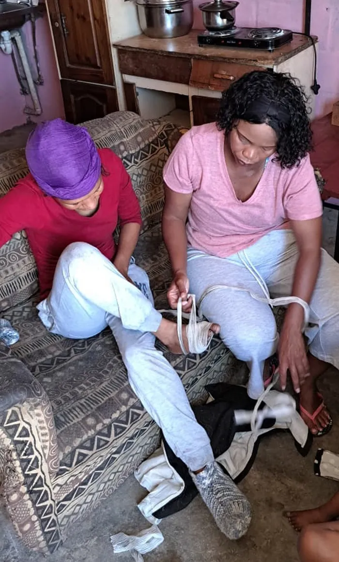 EINA: Abegail Sassa gets foot bandaged. Picture: Solly Lottering