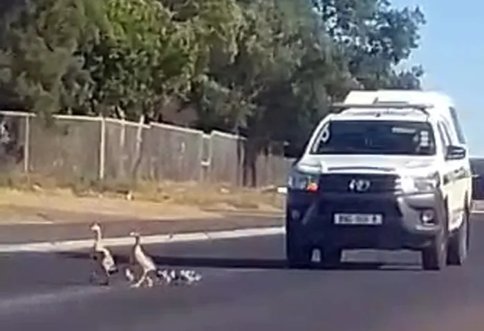A family of geese received a police escort as they travelled through gang-riddled Scottsdene in Kraaifontein.