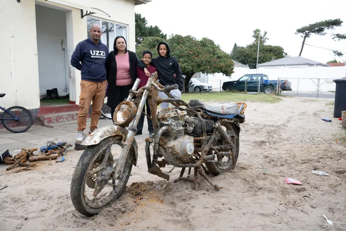 Waheed and his family spent about seven hours trying to dig up the motorcycle, which they eventually did after hauling it out with his bakkie.