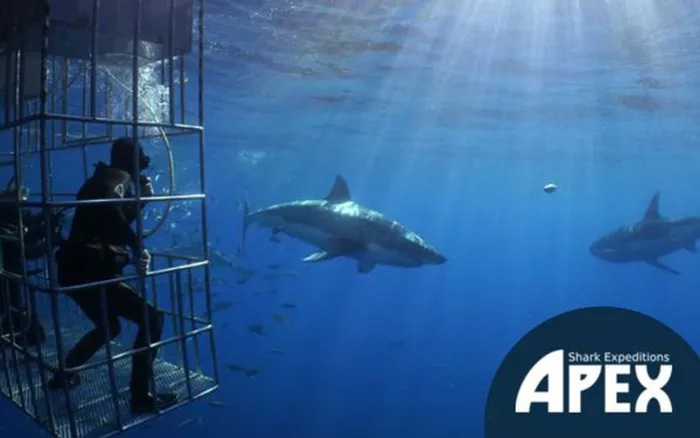 shark cage diving, diving, gansbaai, sharks, ocean, apex Apex Shark Expeditions. Image: Supplied