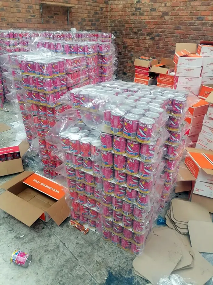 This comes after cops detained seven undocumented migrants, aged 18 to 29, during a search at a facility whose employees were purportedly packing and modifying dates on expired Lucky Star blikkie vis.