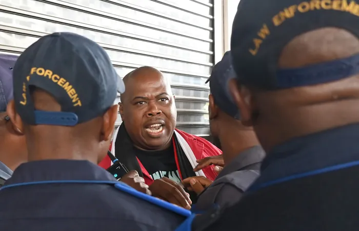CHAOS: Cape Town opposition parties picket outside Civic Centre ahead of the council meeting. Photographer Ayanda Ndamane/ Independent Media
