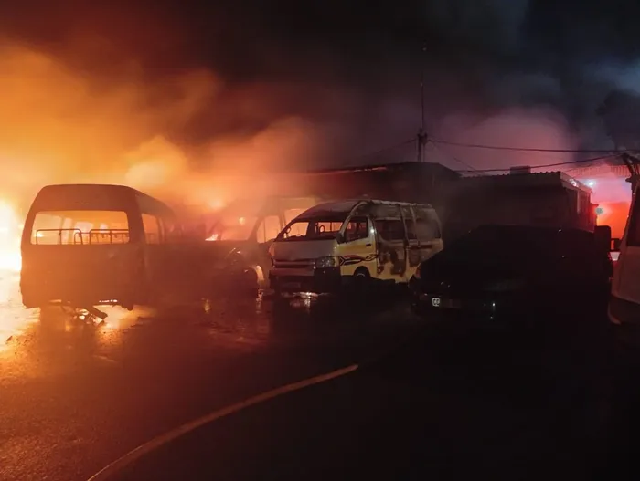 Cape Town Fire and Rescue Services spokesperson Jermaine Carelse confirmed they were called to Nyanga taxi rank at about 10.30pm on Sunday night, saying: “Multiple vehicles were on fire when crews arrived on the scene.