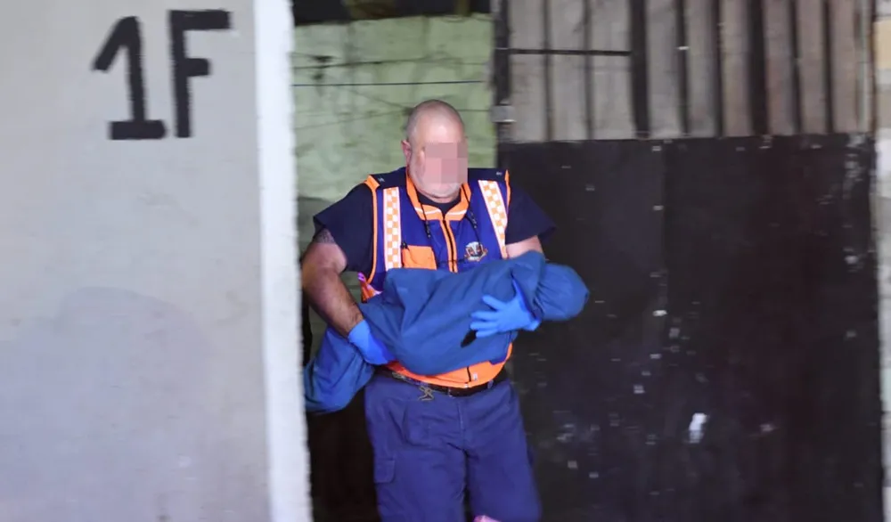 Forensic teams carry away the toddler’s tiny body. Picture; Leon Knipe