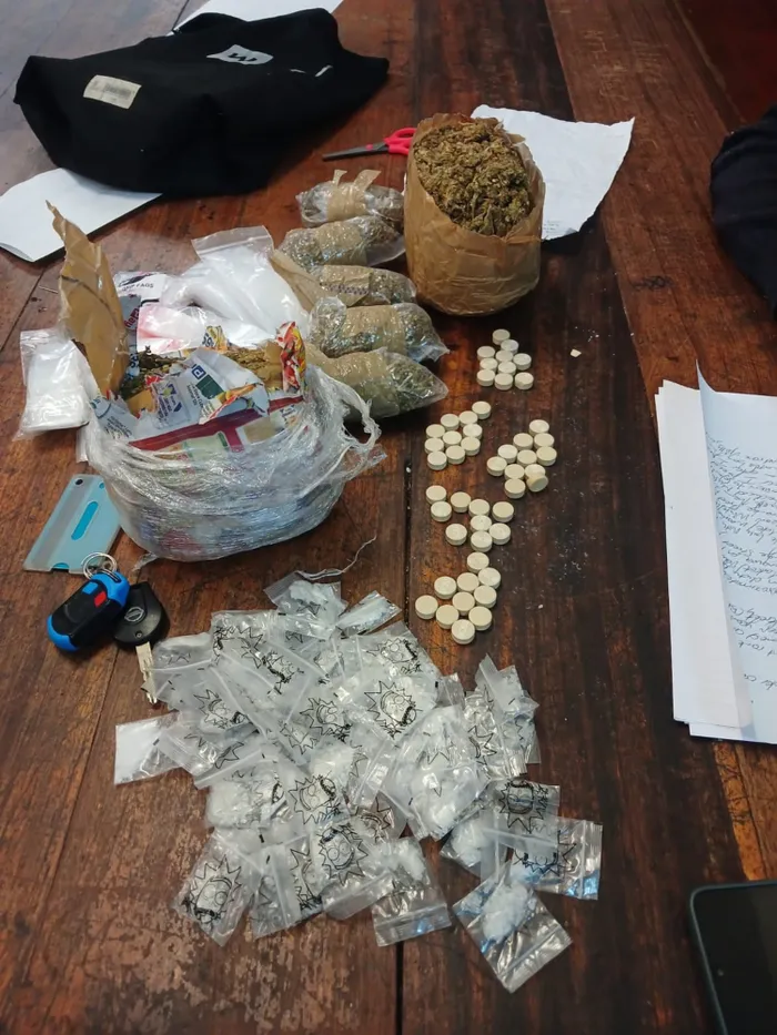Among the confiscated substances were heroin, tik, mandrax tablets, ecstasy tablets, compressed dagga, medicine containers, and Xanax tablets.