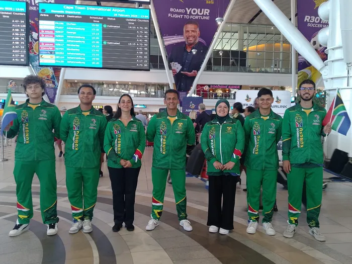 The team of seven flew out from the Cape Town International Airport and will be part of 32 countries and 2500 athletes competing at this global showpiece from 28 February to 3 March.