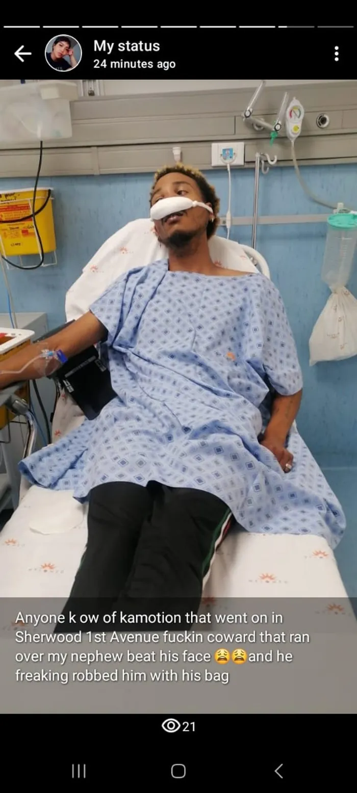 She tells the Daily Voice: “He got off the taxi at Sherwood Park and was walking home when a car stopped and this guy just got out and started attacking him with a knuckle buster. They took his bag and he ran to another relative for help.