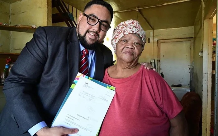 KWAAI: City Mayco member for Human Settlements Carl Pophaim handing over a title deed