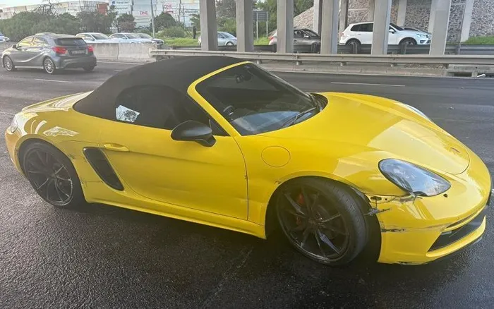 The canary yellow 2016 Porsche Cayman had lelike dents and the paint job was ruined.