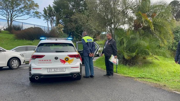 Dyason adds: “The officer who is stationed at the Anti-Land Invasion Unit was arrested amid an investigation by our Safety and Security Information Management Systems (SSIMS) unit in collaboration with the [HAWKS]...