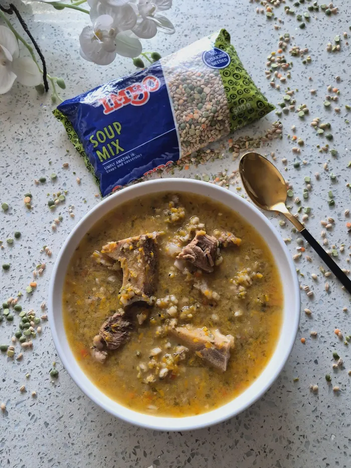 Rinse and then soak the IMBO Soup Mix and IMBO split peas in boiling water overnight, or for at least an hour.