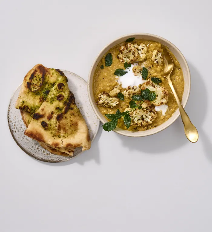 Serve with buttery garlic naan and top with curry leaves if you want.
