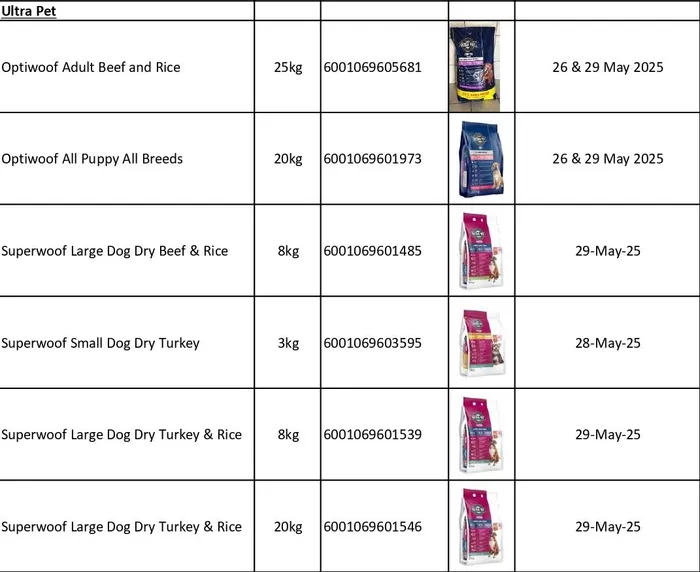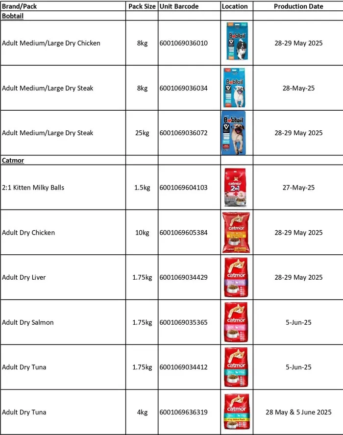 RCL Foods said only the specific batches of pet food are affected and all other products had been tested and were safe to feed to pets.