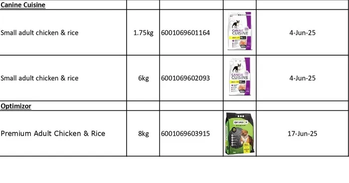RCL Foods has recalled specific batches of dry dog and cat food as the maize used to produce the food had elevated levels of deoxynivalenol (DON) which can lead to loss of appetite and digestive discomfort in pets.