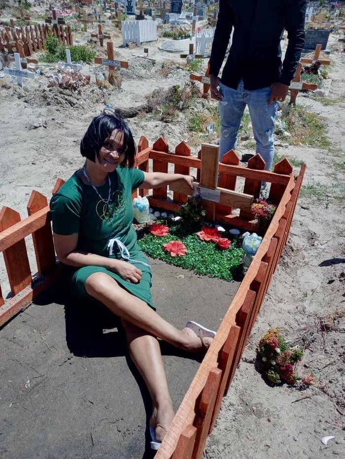 Jolene Jordaan sits at the grave of her three-year-old son, Khy’ree Jordaan, who died after being struck by a vehicle in Clarke’s Estate, Elsies River, in November. The family says it is still waiting for justice as the investigation into the incident continues.