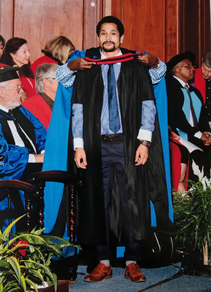 He said he believes his life path chose his destiny of becoming a medical doctor: Around the time I was in grade 11 the two paths met and the medical sciences became a real consideration. At this time I was at Damelin college, where I was lucky enough to have received a bursary, here my passions were fed by the teachers and I was encouraged to pursue an MBChB degree.