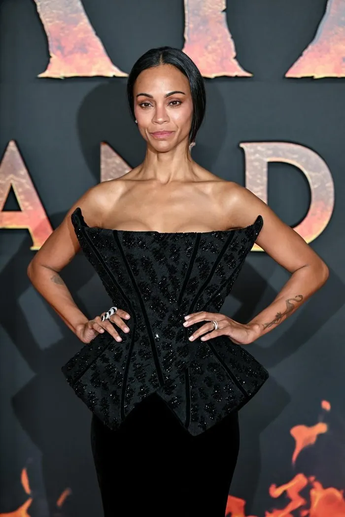 Actress Zoe Saldana at the European premiere of 'Avatar: Fire and Ash'.