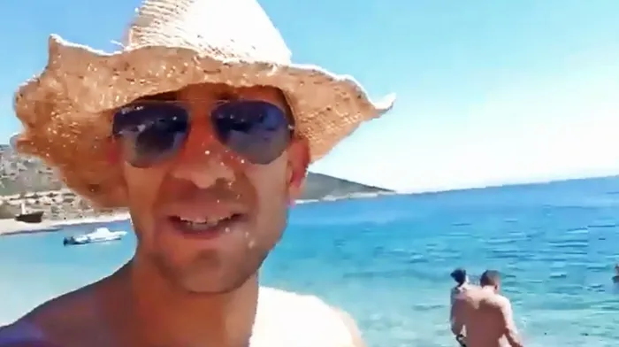 In the 21-second video, which went viral on Tuesday night, Adam Catzavelos, wearing sunglasses, gives a weather report from a beach in Greece.