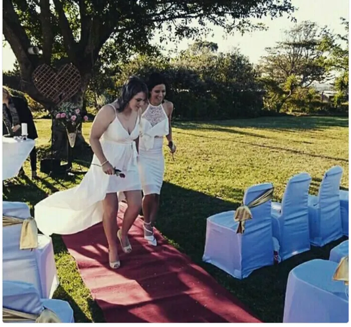 The pair, uitgevat in short ivory wedding gowns, celebrated their big day with friends, family and Proteas team-mates in Port Elizabeth.