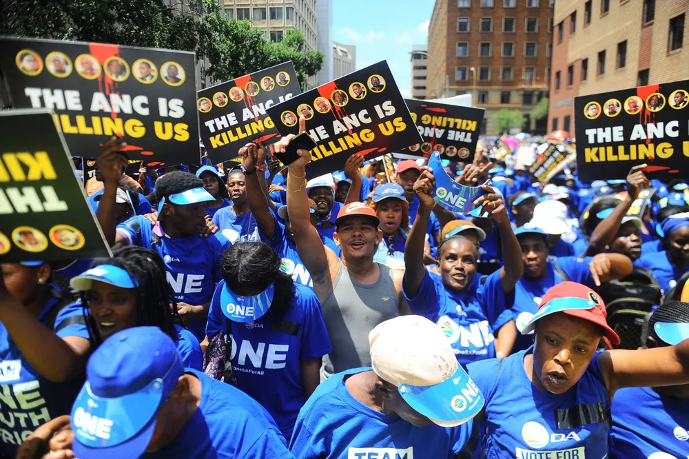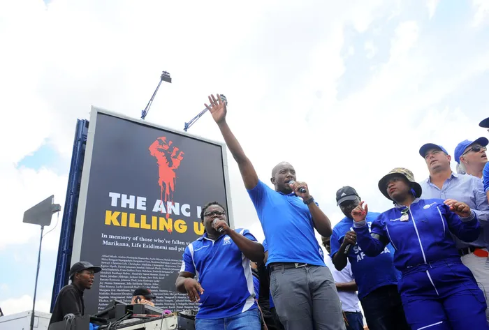 The Democratic Alliance unveiled a billboard during a march in Johannesburg Photo: Bhekikhaya Mabaso/ African News Agency / ANA