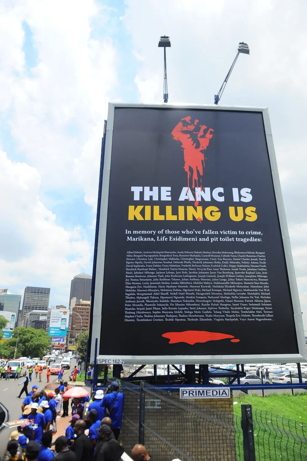 The Democratic Alliance (DA) on Wednesday unveiled a billboard which has names of more than 100 people the party claims were killed by the African National Congress (ANC) due to poor governance.