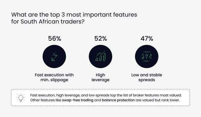 However, risk management features also ranked highly. 35% considered negative balance protection important, while 38% highlighted swap-free trading accounts. These results indicate that South African traders are increasingly demanding more than raw performance. They place substantial value on managing their risk exposure and expect brokers to support their long-term strategies with robust risk-management tools and safeguards. Brokers who incorporate these features into their offerings are meeting the higher standards South African traders demand.