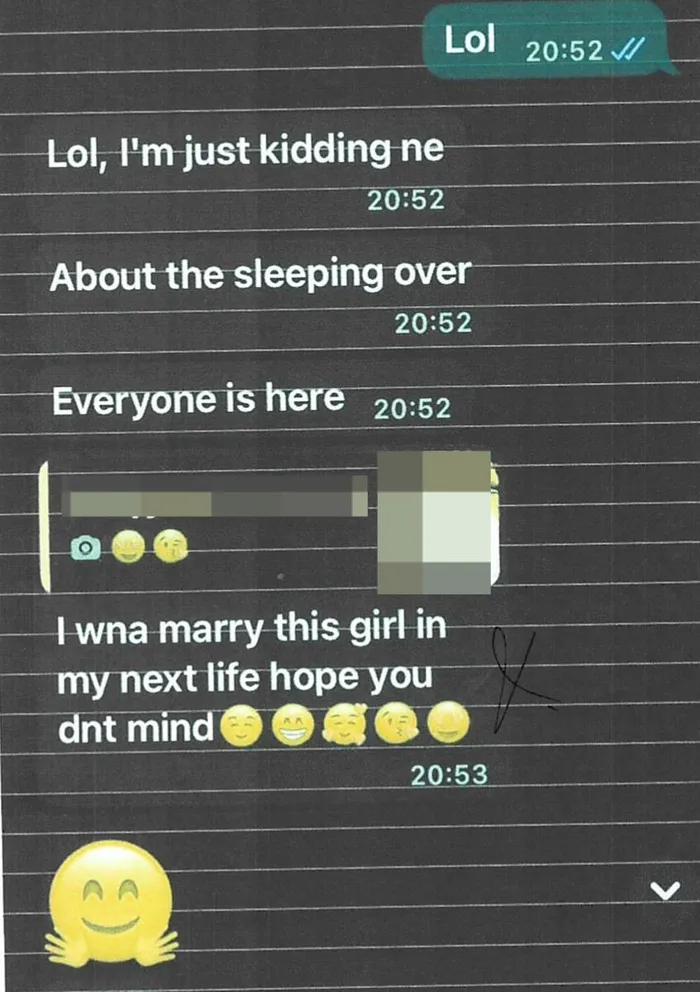 “The messages started last Saturday evening after 12 and then it went on and he then messaged her the Sunday as well and she didn’t respond.