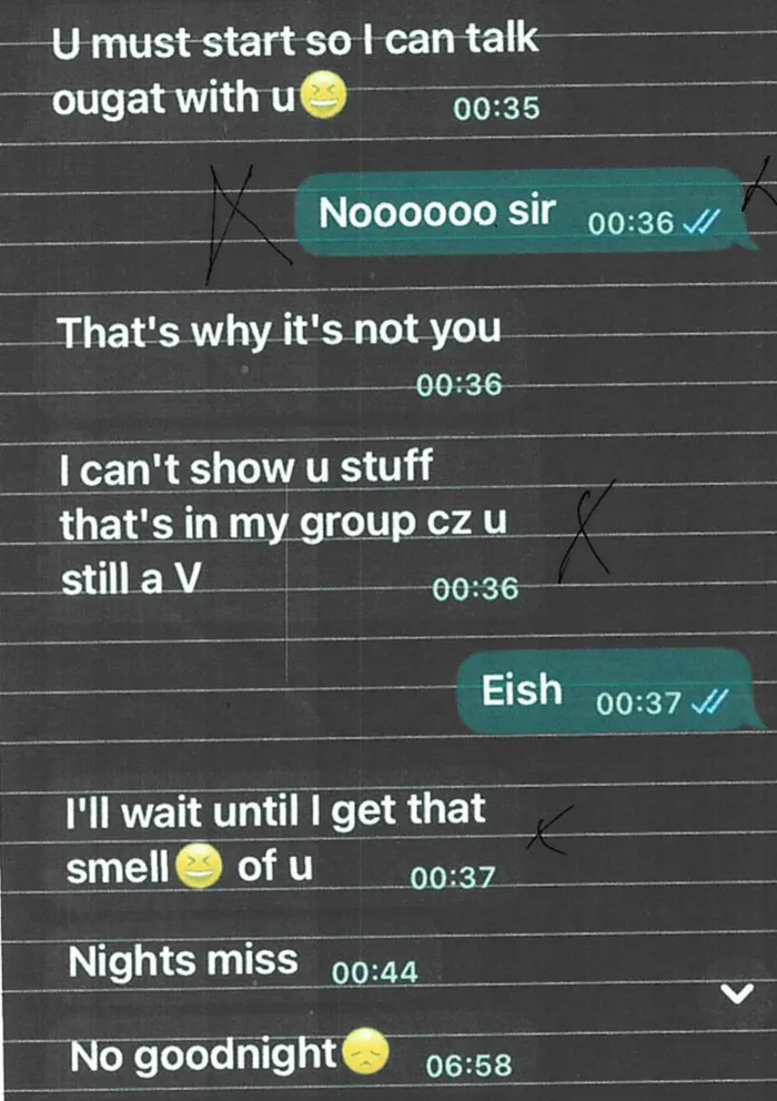 "He then messaged her the Monday as well. Dit was amper soos hy dik hou because she was not responding.