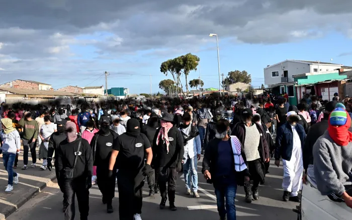 According to reports, skollies also threw stones at members and the community, but SAPS public order police officials (POPS) were also on the scene and made chase while the march continued.