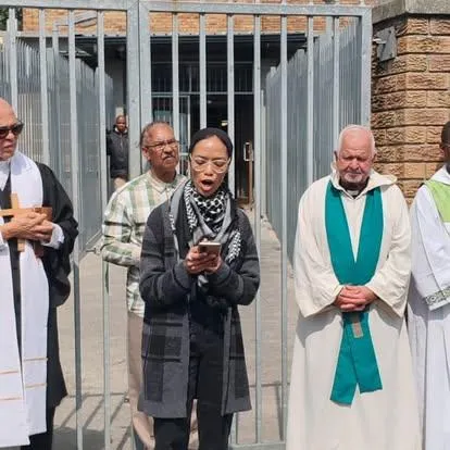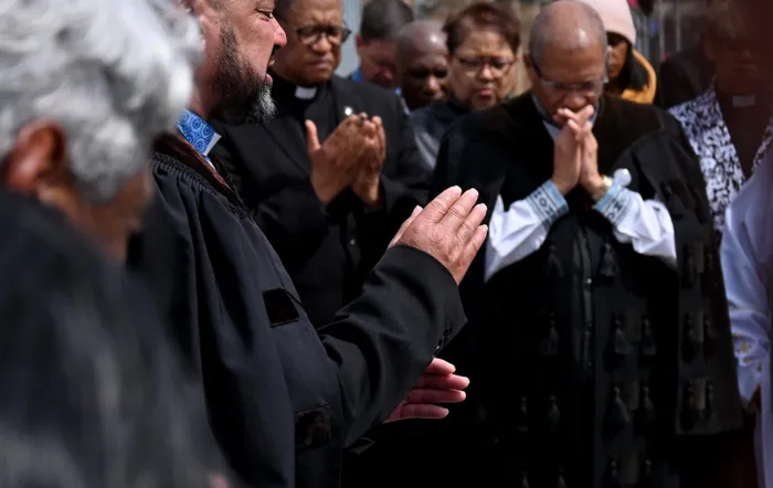 Rev. Steven John Bam of the Calvyn Protestant Church, Imam Rashied Omar of the Claremont Main Road Masjida and Rev. Dr. Llewellyn MacMaster, Chairperson of the Cape Crime Crisis Coalition were joined by fellow interfaith leaders