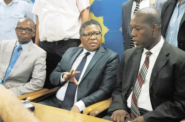 ON THE JOB: Mbalula, centre, after Nyanga mall robbery ON THE JOB: Mbalula, centre, after Nyanga mall robbery