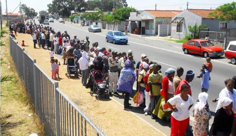 UNACCEPTABLE: Desperate mense in an overcrowded queue at Sassa