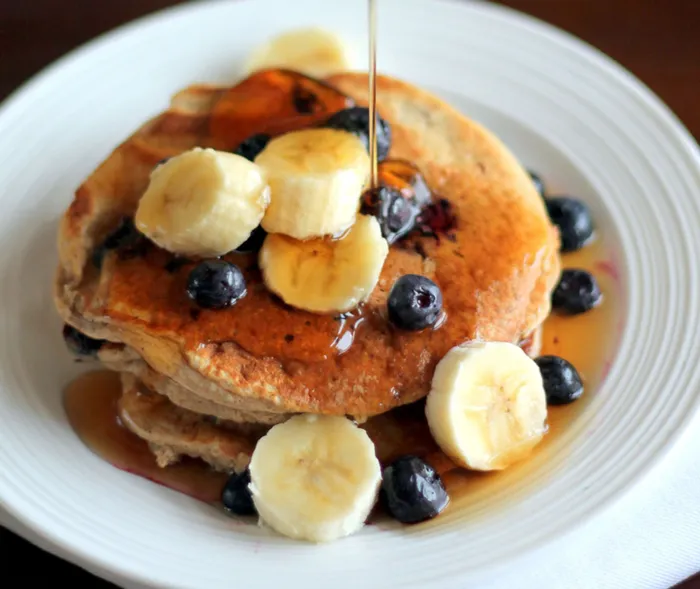 - Drop two tablespoons of batter per flapjack into the pan and leave to cook. When bubbles form on the surface, turn the flapjacks over and cook on the other side.