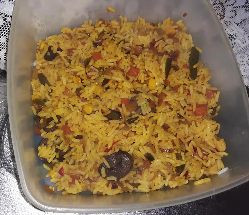 add 1 tablespoon of egg yellow food colouring and toss through rice, gives a tri-colour rice