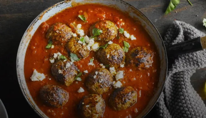 Cook the meatballs in a non-stick pan for 6-8 minutes, then add the onion and fry a further 2-3 minutes. Add the tomatoes, cumin and Knorr stock with 100ml water and cook for 4-5 minutes.