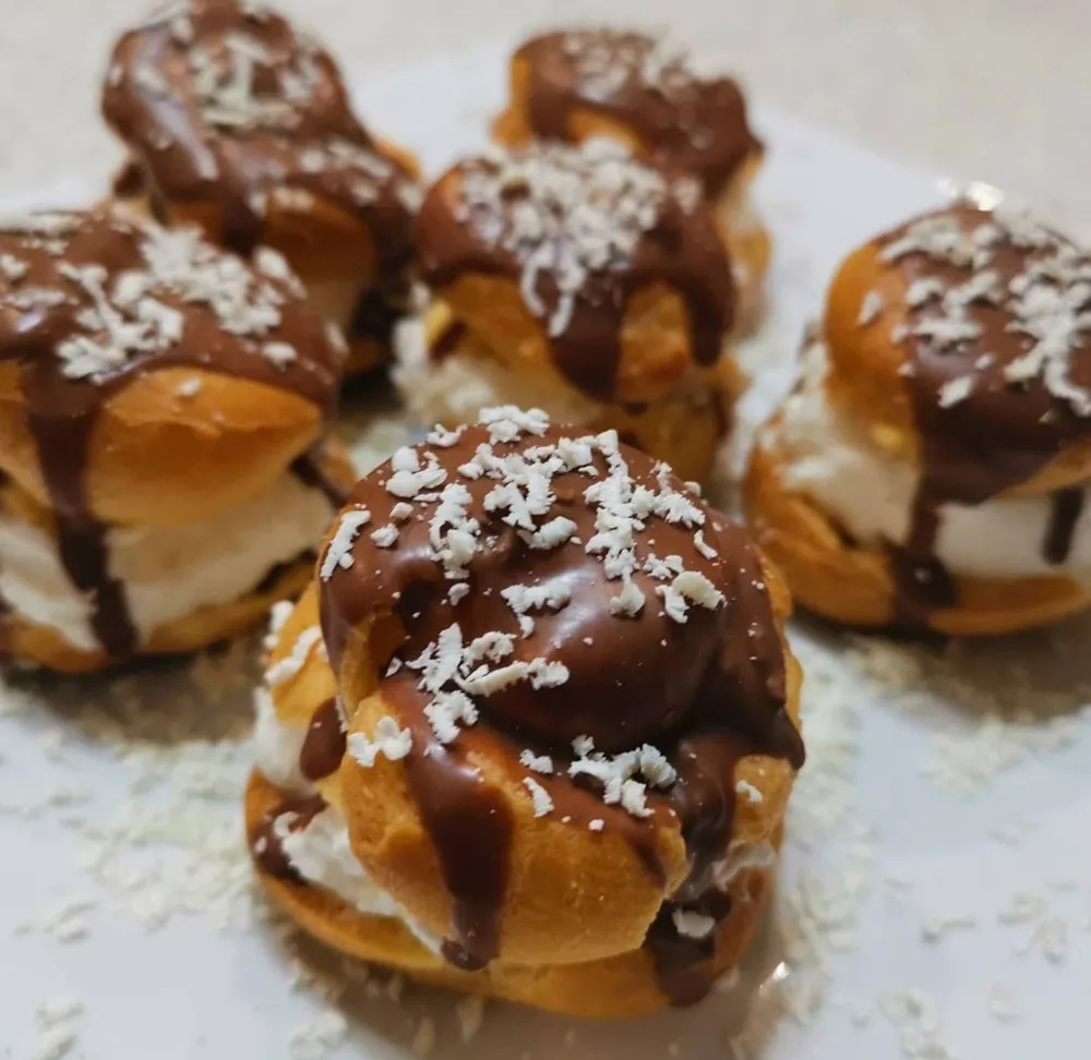 Once golden, turn the oven off but leave the door open and allow the eclairs to cool for at least a half hour.
