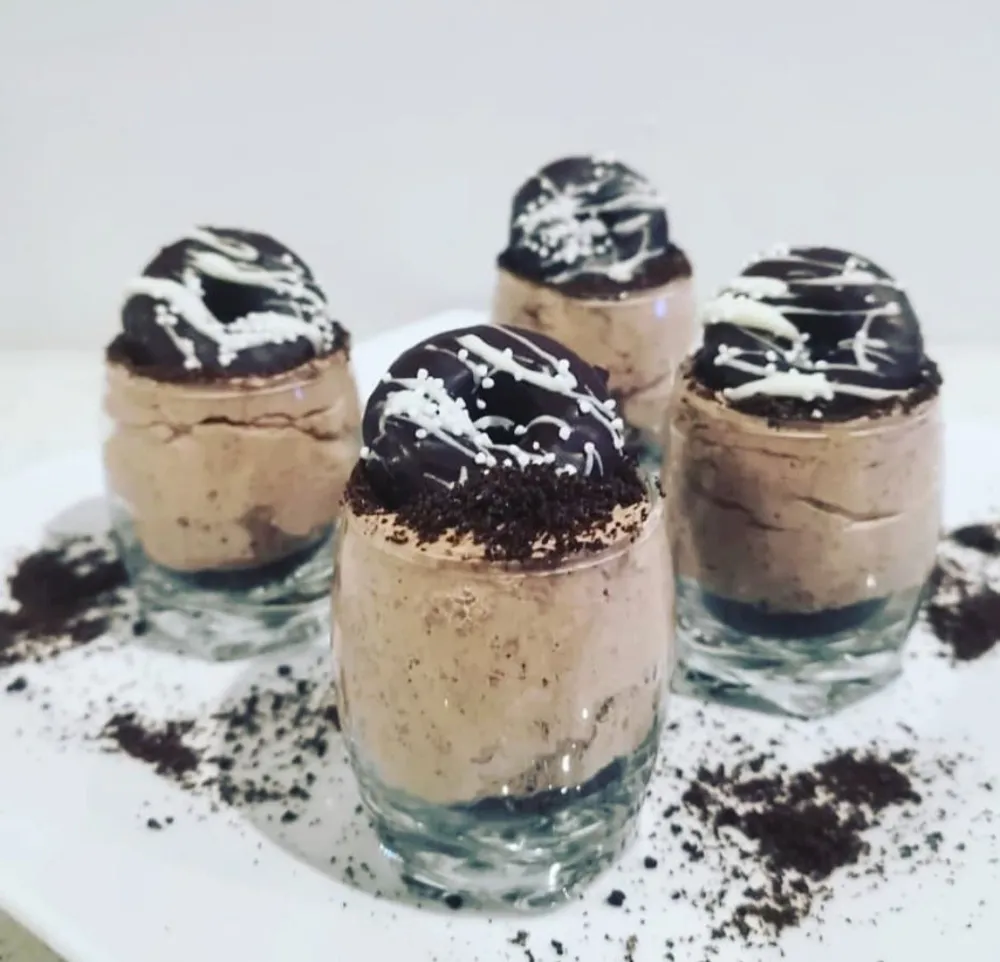 Add in your cocoa, vanilla essences and icing sugar and whisk until smooth. Lastly fold in your whipped cream and add in your crushed Oreos.