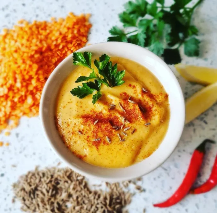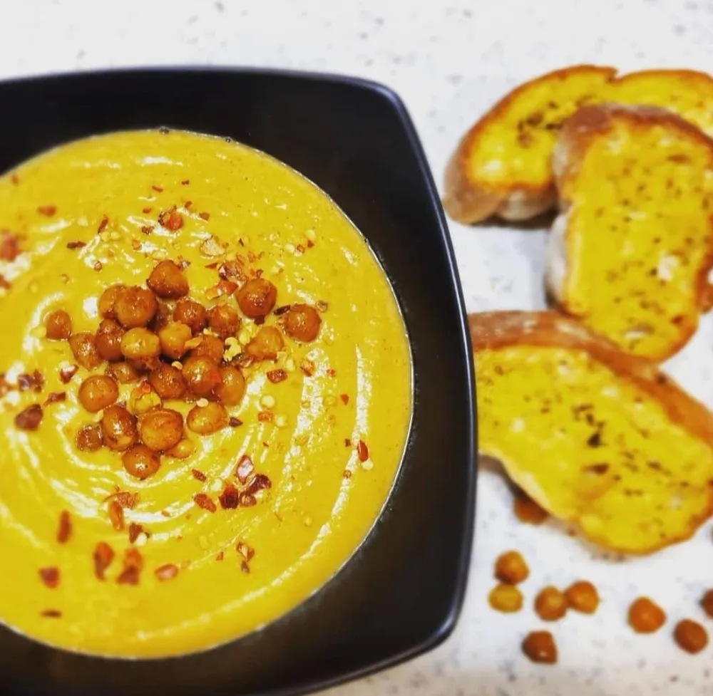 Simmer until it boils and serve by garnishing with airfried or pan Roasted chickpeas (the remaining ¼ tin) and a sprinkle of crushed chillies